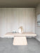 Crafted from solid acacia wood, the Arena Dining Table combines bold presence with sculptural simplicity. Its curved rectangular top rests on a gently tapered pedestal base, showcasing the natural grain and warm tones of the wood. The soft edges and generous proportions bring a sense of organic calm to contemporary interiors. Measuring 200 x 100 x 76 cm, this table comfortably seats six and provides the perfect foundation for stylish dining. Pair with the coordinating Arena Leather Dining Chairs to complete the look, the natural wood and leather combination creates a harmonious, elevated setting ideal for everyday dining or special gatherings. Dimensions 200x100x76cm.