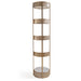 The Belvedere Round Shelving Unit brings vertical elegance and practical storage to any home or commercial space with its tall, slim profile and refined mix of materials. Champagne gold-finished iron frames four tiers of brown-tinted glass, crowned at the base by a striking white Banswara marble shelf. Each tier features a subtly ribbed surround for added texture. Perfect for displaying books, decorative accents or glassware, this statement piece blends function with sophistication. Part of our highly popular Belvedere collection.