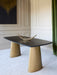 Retro-infused luxury meets contemporary design. The Caldera Dining Table features a striking 32mm Black marble top, with a rich dark hue and natural veining, making every top unique. Its softened rectangular form rests on four sculptural, brass-toned metal pedestal legs, finished with a subtle patina. A harmonious blend of old-world elegance and modern craftsmanship, this elegant dining table seats 6 to 8 people. 200 x 90 x 76cm.