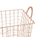 A perfect storage solution, this basket is ideal for keeping books, magazines and toys organised. Constructed from copper finish iron, this rectangular basket has vertical and wavy lines that combine to form its sleek wireframe. The basket has dual side handles with a matching spiral detail on them creating a decorative aesthetic.