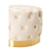Indulge in the lavishness of this stool, boasting button tufted plush velvet upholstery that exudes luxury. The sleek matte gold finish metal base perfectly complements the stone velvet, elevating this stool into a truly opulent accent piece suitable for the most exclusive of decors.