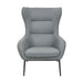 This armchair brings upscale style, comfort, and luxe accent to living room along with the matching footstool. This mid-century inspired Kyoto wingback armchair is upholstered in grey faux-leather with metal legs in black finish. Completed with a matching footstool, this chair offers the perfect match with its timeless and minimal appeal in the living space.