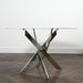 Silver Plated Marble Effect Glass Round Dining Table - 120cm