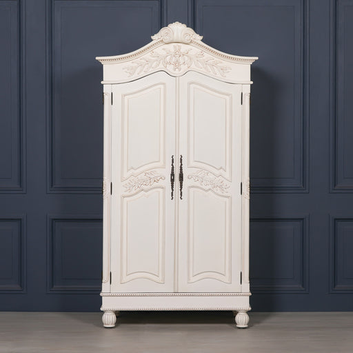 • Wooden Carved French Chateau White Double Armoire Wardrobe